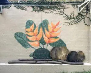 Cats Allen and Katza allowed me in the house after some dubious inspections. It was amazing to see familiar furnishing from the Seattle house, like some sort of crazy transport. Will has done a great job creating an outdoor space that reflects his style and incorporates local finds/forages. He mentioned an interest in adding some art to the garden walls which gave me a chance to warm up my painting skills before the big mural project.