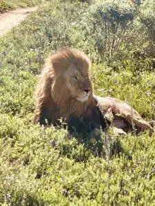 Heather flew down last Friday to join me for adventures in the area. Sadly, Will’s flight was cancelled so he couldn’t join us. Heather and I took an afternoon/evening game drive in the Schotia Private reserve. We found ourselves very close to a male lion who was waiting outside the fence for females in the next section. In order to limit the lion population, pairing is managed so this guy will be waiting a long time.