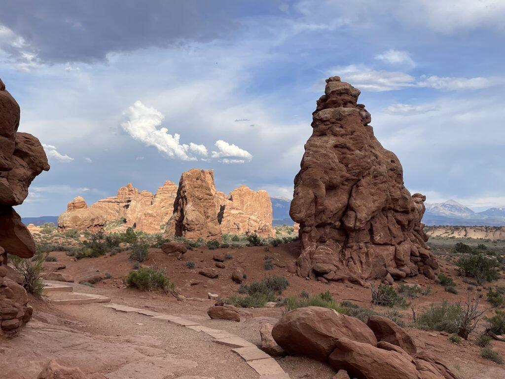 Arrived at Arches National Park in the heat of the afternoon. After entering the park, the road makes a few steep switchbacks through the most amazing red rock walls. The speed limit is 15 mph which was perfect because I just wanted to gape at the sights unfolding in front of me. A Celebration of Rock became the theme for the next few days. All of the anxiety about making the trip evaporated in the grandeur of these rock formations, and I hadn’t seen a single arch, yet. I was immediately grateful for the opportunity to be in this park.